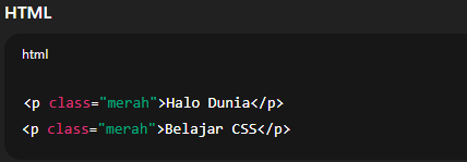 Di sini kalian bisa menggunakan contoh di HTML,cara penggunana Classes ini tidak hanya di paragraf doang di code <img> ,<h1>,<h2>DLL itu bisa asalkan tidak salah menamai Classesnya kecuali <head>.