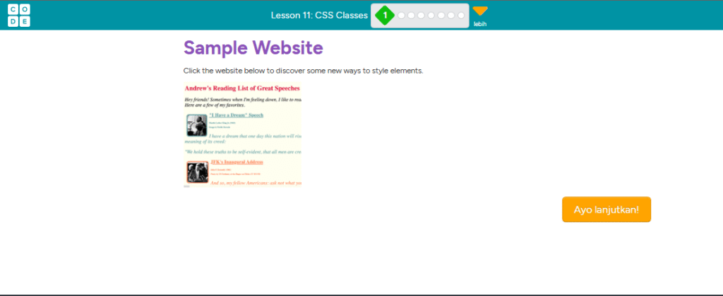 Di gambar tersebut ada sebuah contoh Sample website.lanjut ke No.2 akan diperlihatkan sebuah code yang harus diberi lable atau classes